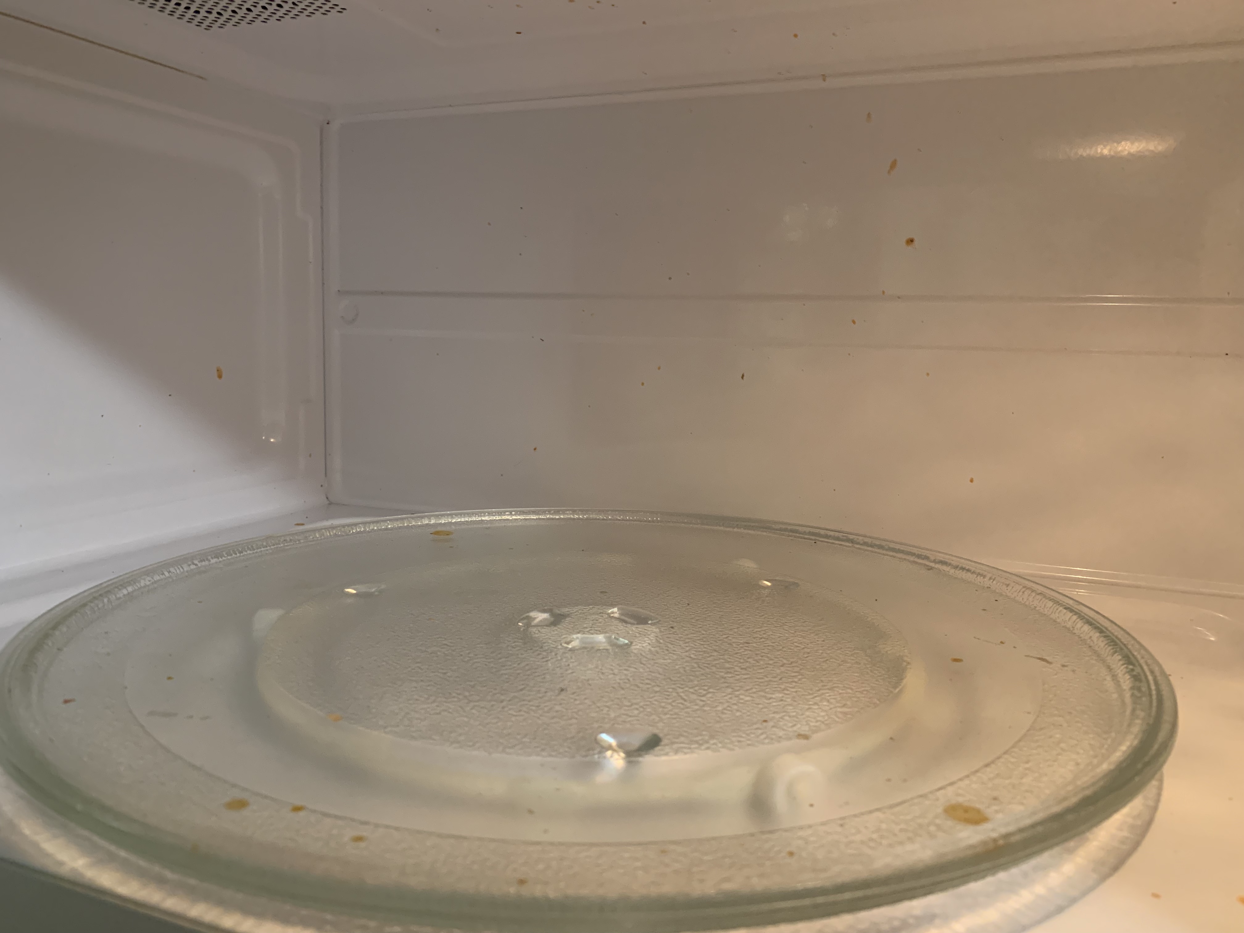 I removed the glass turntable and used one cleaning vinegar wipe to clean the entire interior of the microwave. Then, I liberally sprayed the Vinegar Glass Cleaner on the turntable and gently scrubbed to remove the stubborn bits.