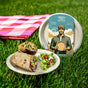 Use our fiber plate for serving both hot or cold foods, then dispose of it in a commercial compost bin where accepted.