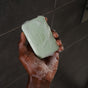 A green Oars + Alps Athlete Bar Soap with Epsom Salt sits beside its dark blue box, decorated with abstract white waves and Soothe + Recharge text, featuring a soothing eucalyptus spearmint scent. A person showers, holding a light green Athlete Bar Soap with Epsom Salt by Oars + Alps against their soapy chest. The soap is embossed with “Oars + Alps.” A blurred background shows a towel. A hand holds a green bar of Oars + Alps Athlete Bar Soap with Epsom Salt, covered in lather, with water droplets and a tiled shower wall in the background, suggesting a refreshing cleanse. A man stretches on a yoga mat near a brick wall, with three Oars + Alps products—Athlete Bar Soap with Epsom Salt, a tube, and a small bottle—featuring eucalyptus spearmint scent arranged in the foreground. A light green rectangular bar of Oars + Alps Athlete Bar Soap with Epsom Salt sits on a white shelf against a tiled wall.