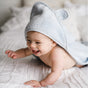 The Natemia hooded baby towel, in light blue with a bear ears hood, is crafted from ultra-soft 100% organic cotton and GOTS certified.