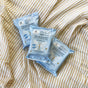 The grab green Baby Wipes - Witch Hazel come in a blue pack with butterfly and floral designs, containing 32 wipes. They feature a plant-based formula with no parabens, ideal for soothing babys skin. The image displays the back of blue Baby Wipes - Witch Hazel packaging by grab green. It features usage instructions with butterfly illustrations, highlights true transparency, gently soothes babys skin, lists no parabens in ingredients, and includes a barcode at the bottom right. A display features three packs of blue grab green Baby Wipes - Witch Hazel on beige-striped fabric. Text above describes it with citrus lemon peel oil and a soothe babys skin label, made with essential oils and free from parabens. Image displaying How it Works above three steps: 1. Lift seal & remove grab greens Baby Wipes - Witch Hazel. 2. Gently wipe to soothe babys skin. 3. Reseal package to keep wipes moist, free of parabens. Each step is illustrated with simple line drawings. Three packs of grab greens Baby Wipes - Witch Hazel - NEW, with blue packaging and a white label featuring text and a small tree illustration, rest on a white and mustard striped fabric backdrop, ideal for soothing irritated skin.