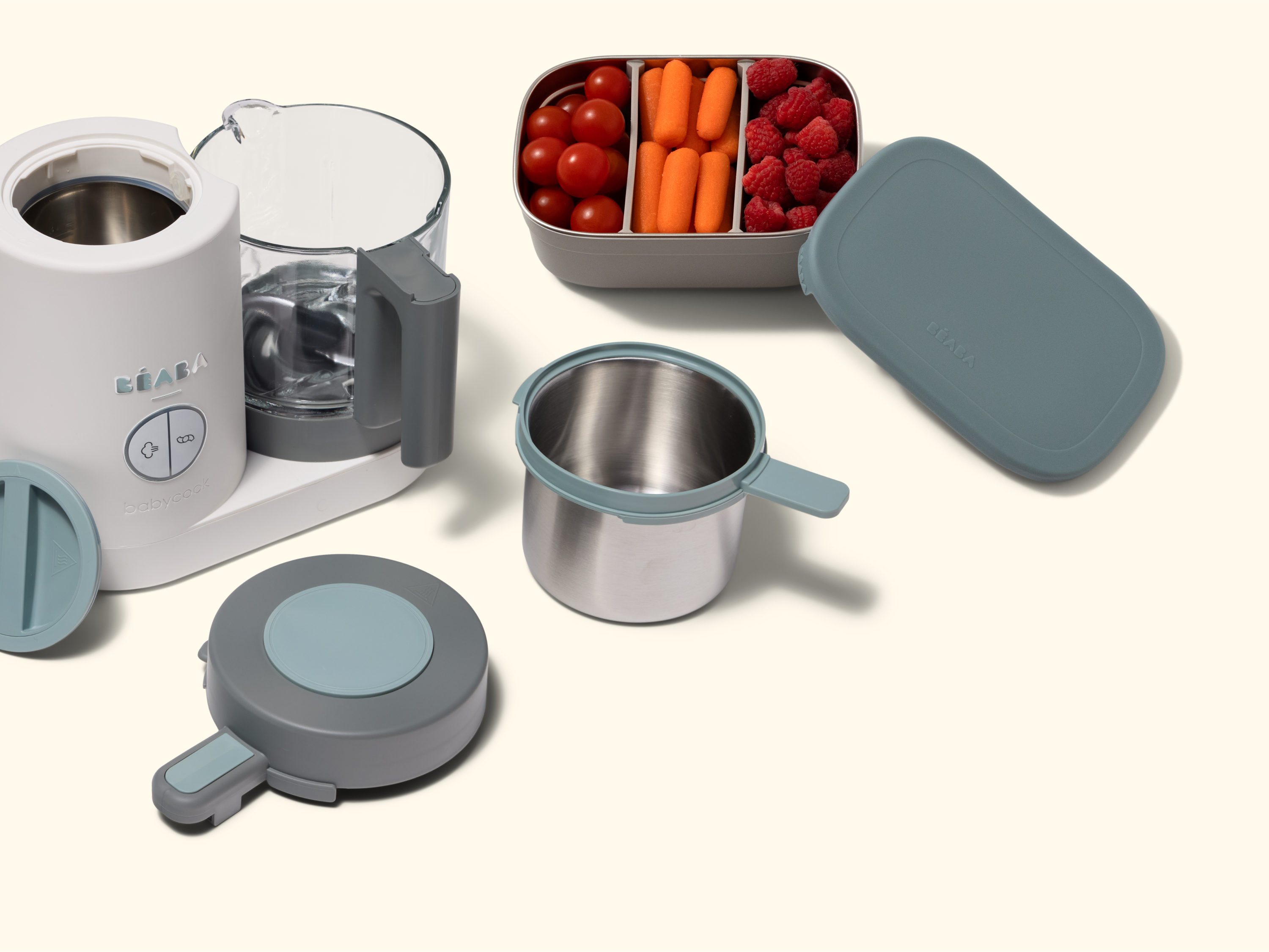 Giving your baby the healthiest start to life begins with feeding baby natural and clean foods from day one. BEABA Babycook® Solo Baby Food Maker is the first and best-selling homemade baby food machine that helps parents make fresh, nutritious purees for baby with natural ingredients they can pick and control. Steam cooking allows food to retain the nutrients that are eliminated through other cooking methods – this baby food maker steams and blends everything from fruits, veggies to meats and fish from raw in 20 minutes or less. Designed with 4-in-1 function, Babycook steams, blends, warms and defrosts all in one sleek machine, eliminating the need for pots, pans, blenders and microwaves. Freshly made by you, you can rest assured baby’s purees will be free from stabilizers, additives, preservatives & yuckies. Cheers to your homemade baby food journey, we can’t wait to be a part of it!