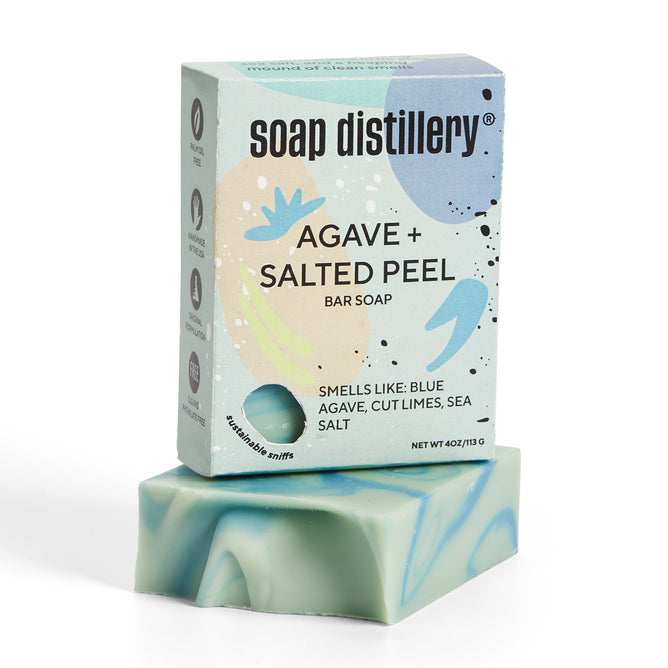 - Agave + Salted Peel: Clean and green, this sea salted soap smells like blue agave, cut limes, and sea salt.