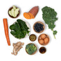 Beef, Beef Heart, Beef Liver, Beef Kidney, Whole Egg, Flaxseed, Sweet Potato, Cod Liver, Carrots, Apples, Blueberries, Pumpkin Seeds, Spinach, Inulin, Cranberries, Ginger, Broccoli, Kale, Sodium Bicarbonate, Dried Enterococcus faecium Fermentation Product, Dried Lactobacillus acidophilusFermentation Product, Dried Lactobacillus casei Fermentation Product and Mixed Tocopherols. Guaranteed Analysis: Crude Protein...43% min, Crude Fiber...2.5% max, Crude Fat...31.5% min, Moisture...7% max