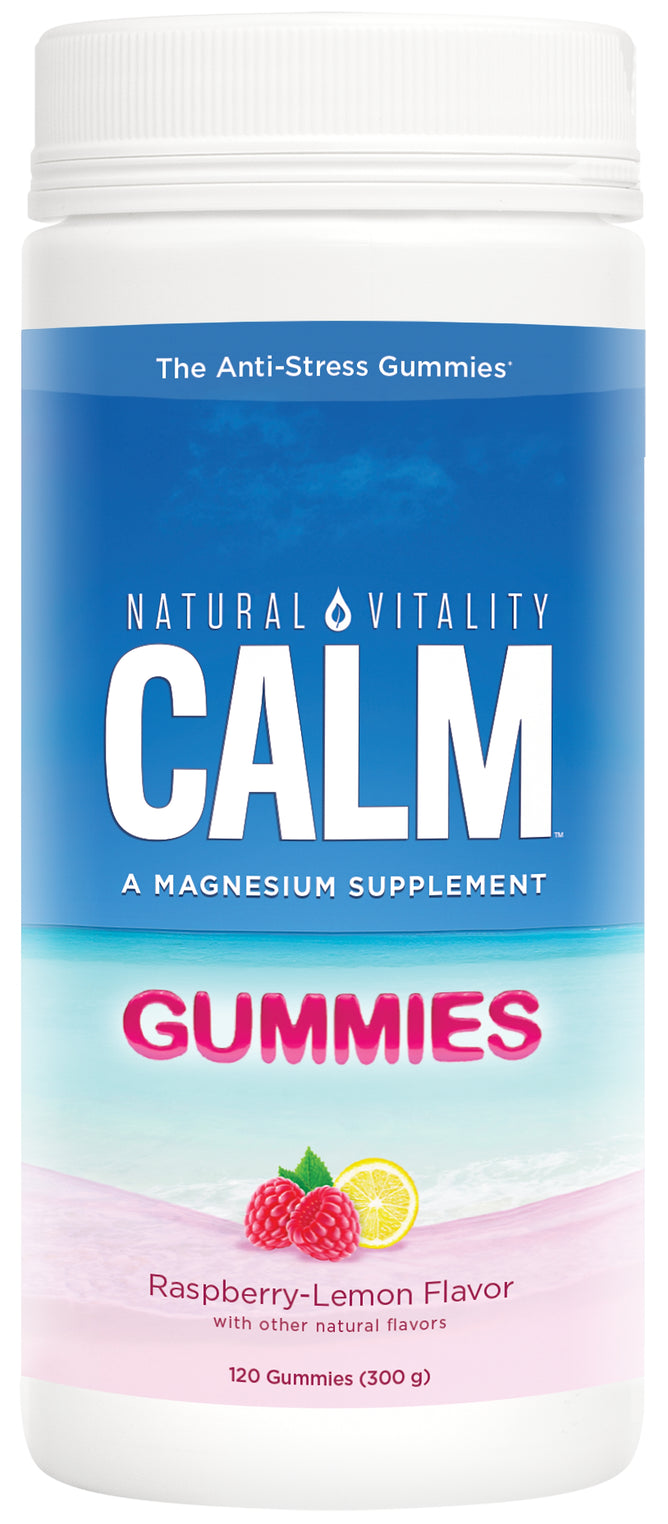 Natural Vitality CALM Gummies are a convenient, delicious magnesium supplement to help support a balanced mood and a healthy response to stress*. Natural CALM magnesium supplements help support over 300 cellular processes in your body like maintaining cardiovascular health, brain and nervous system function, and healthy bones and muscles*. Help manage stress, release tension and calm your mind with these chewable magnesium supplements*. Vegan, gluten-free ingredients combine in these magnesium gummies to create a flavorful raspberry lemon taste. CALM Natural Vitality magnesium supplements contain no artificial flavor or synthetic color.
