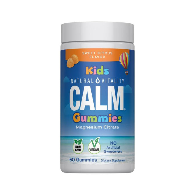 Natural Vitality CALM ® for Kids Gummies a magnesium supplement with sweet citrus flavor delicious magnesium supplement to help support muscle heart brain and nervous system health. Delicious sweet citrus flavor with only 1 gram of sugar per gummy.