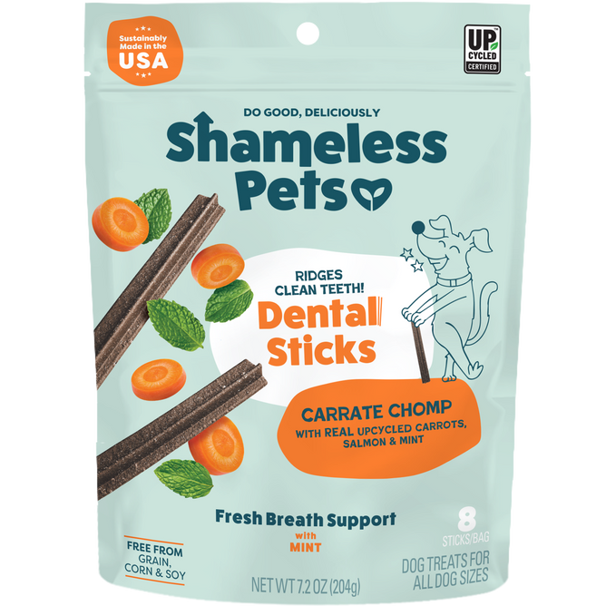 Did you know Shameless Pets dental chews are grain-free, corn-free, and soy-free, and they’re made with upcycled ingredients? Shameless Pets was in shock about the more than 63 million tons of food that gets tossed out every year in the U.S. and made it their mission to do something about it. Using upcycled ingredients in their products ensures less food waste, making a big difference for dog lovers and people who care about this planet.