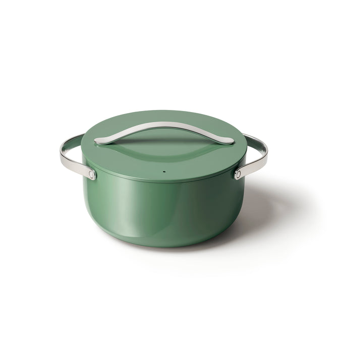 Caraway's non-toxic Dutch Oven (lid included) allows for healthy cooking in the kitchen without harmful chemicals: use for stews, bread baking, and more. Featuring a ceramic-coated interior, this durable non-stick pot makes cooking easier than ever, cleaning (dare we say) enjoyable, and adds a pop of color to any home. Both Oven and Stovetop safe.