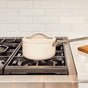 All Caraway pot and pan sets are free of PTFE, PFOA, PFAS, lead, cadmium and other toxic materials that can leach into your food, making them safe for you, your family, and the environment.