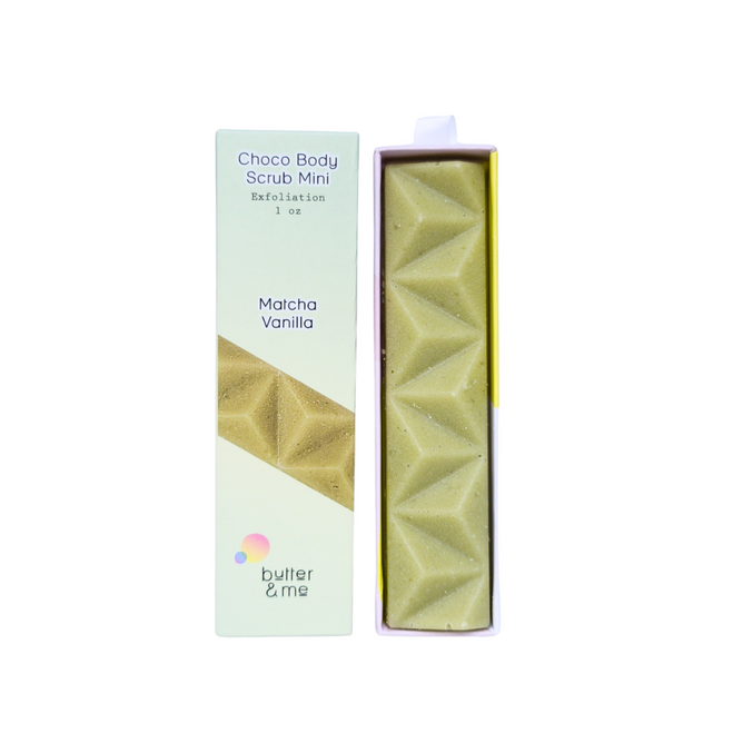 Matcha Vanilla: Indulge in the ultimate chocolate experience on the go with our Matcha Vanilla Choco Body Scrub Mini. Perfectly sized for travel, this luxurious scrub combines natural sugar exfoliants with rich cocoa butter, ensuring a smooth, glowing complexion wherever your adventures take you. Its enticing aroma of matcha latte—a comforting blend of matcha, vanilla, and chocolate—offers a uniquely luxurious scrubbing experience, making every use a mini getaway for your skin.
