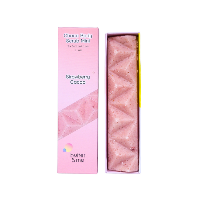 Strawberry Cacao: Elevate your skincare routine with the luscious Strawberry Cacao Choco Body Scrub Mini, a perfect fusion of indulgence and convenience tailored for the travel-savvy. This luxurious scrub harnesses the power of natural sugar exfoliants and rich cocoa butter to ensure your skin emerges smooth and radiant from every application. Delight in the decadent aroma of chocolate-covered strawberries, where the lush sweetness of ripe berries meets the opulent richness of chocolate, creating a sumptuous exfoliation experience.
