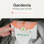 A box of Classic Dryer Sheets - Gardenia - NEW by grab green contains 80 sheets in light green, floral-designed packaging with a pink tab, highlighting its static cling reduction and clothes softening abilities while freshening. Plus, the package is compostable!. The image shows the back of a box of grab green Classic Dryer Sheets in Gardenia. It includes usage instructions, highlights benefits such as being compostable and cruelty-free, and provides contact information. The packaging is primarily white with black and green text to soften clothes and reduce static cling. A hand places a box of grab green Classic Dryer Sheets - Gardenia - NEW, featuring purifying, sweet, and soft qualities with essential oils to soften clothes and reduce static cling, into the dryer. A white towel is inside the dryer. Grab Greens Classic Dryer Sheets - Lavender with Vanilla - NEW can soften clothing, reduce static cling, and be used to freshen up drawers, suitcases, and pillowcases. Highlighted in an infographic with product image: compostable material and 80 sheets per pack. On the left, a green box of grab greens Classic Dryer Sheets - Lavender with Vanilla, free from animal fat and wax to soften and reduce static. On the right, a gray pack of Conventional Dryer Sheets containing animal fat and wax is for different results. Each comes with 80 sheets.