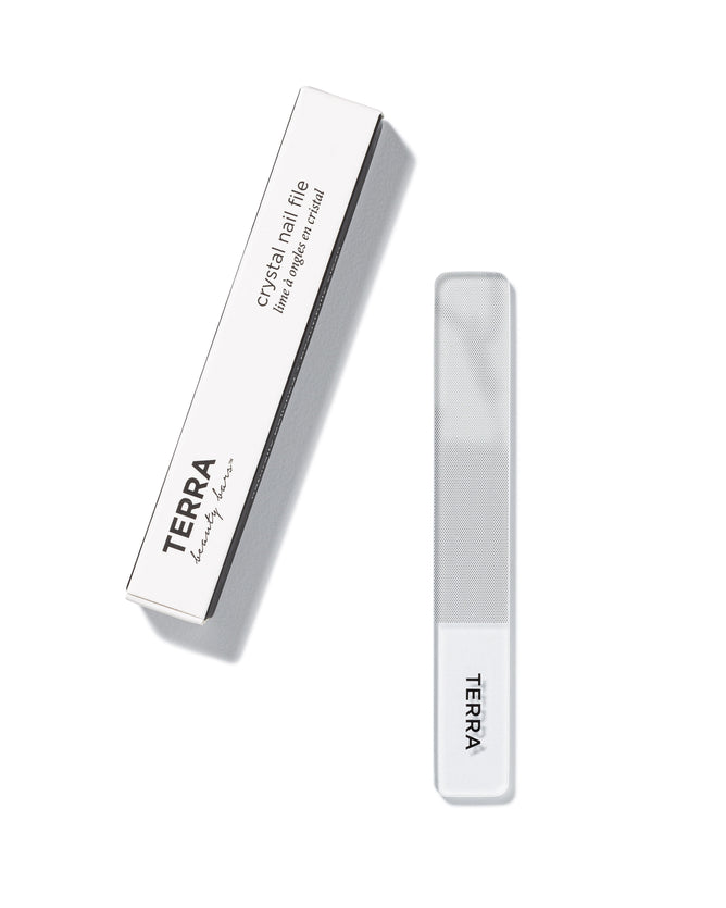 The Terra Crystal Nail file is an innovative, softer nail file with a fine grit through nano glass technology. This glass and recyclable nail file creates a clean, smooth and sealed nail edge and last's 3x longer than your standard traditional emery nail file.
