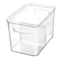 Upgrade your kitchen storage with the iDesign Crisp Organizer Bin with Handles. This divided bin creates instant organization in the refrigerator, freezer, or pantry for items such as snack bags, pouches, packets, boxes, bars, bottles, and more. The built-in handles allow for quick reorganization, while the open top and transparent sides ensure contents are always visible and accessible. The two removable dividers help keep items upright and provide custom storage options.