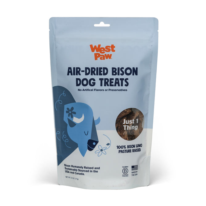 Dogs will start their own stampede if it means they can get to these treats quicker. West Paw's Air-Dried Bison Lung Dog Treats have a chewy but sturdy texture, and are easy to break into smaller snacks. Bison is naturally high in protein, B vitamins, and omega 3 fatty acid, yet low in fat.