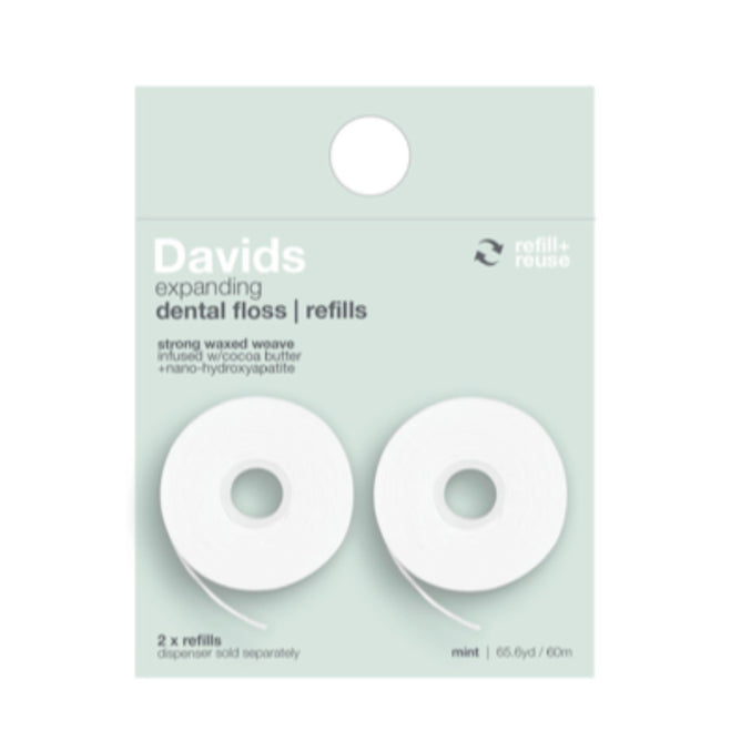 - The Davids floss refill system is designed to reduce waste & save energy by eliminating single-use disposable dispensers. The reusable plastic dispenser opens easily for installing floss refills.