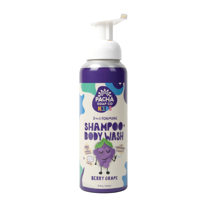 Lather up with some fruity fun with Pacha Soap Co.'s 2-in-1 Foaming Shampoo & Body Wash! Crafted with real, non-toxic fruit ingredients for a gentle bathe experience you can feel good about. Free of SLS, parabens and sulfates and tear-free.