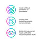 - Packaging made from 80% recycled plastic, supporting our belief in sustainability.