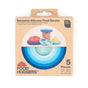 Place the hugger on the counter and press the food into the hugger, releasing any air, until the cut side of the produce rests firmly against the hugger. No adjustment is needed. The hugger will fold inward around your food to create a seal.