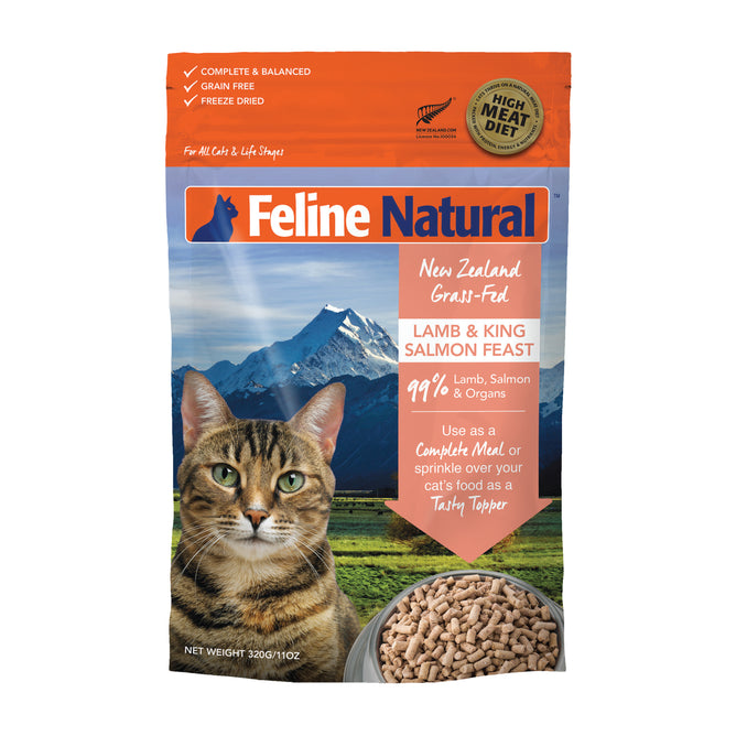 - Chicken & Lamb: Our freeze-dried Chicken & Lamb Feasts are expertly crafted for whole-body health and made with 98% cage-free chicken, free-range, grass-fed and grass-finished lamb along with green-lipped mussels, vitamins, minerals and taurine. Packed with New Zealand wholefood goodness, providing a natural diet rich in protein and nutrients for a happy, healthy cat. Energy and taste they'll love.
