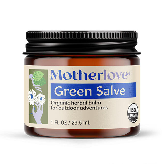 If summer is your favorite season, then Motherlove's Green Salve should be your favorite product. Formulated with organic herbs, it’s an outdoor essential to always have in your pack for the annoyances, the unExpected, and the not-so-welcome moments that sometimes come with outdoor fun. Apply a thin layer to the affected area as often as needed. Remember, a little goes a long way!