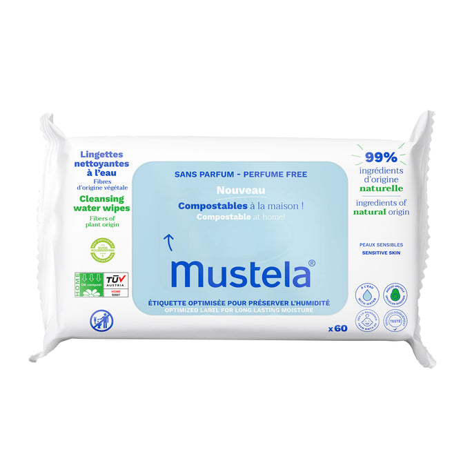These compostable baby wipes effectively clean the face, hands or diaper area, from birth on. Made of 99% ingredients of natural origin and plant-based fibers, they are compostable at home*.