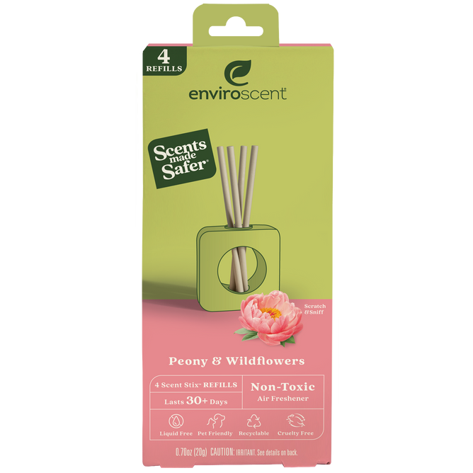 Refresh your Enviroscent Stix Diffuser Air Freshener Kit with liquid free, recyclable Scent Stix™ refills. No spills, or leaks! Non-toxic, not overwhelming, and the peace of mind knowing you're protecting your family, pets, and the planet.