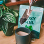Resealable 100% sugarcane-based packaging in convenient sizes for indoor plant parents.