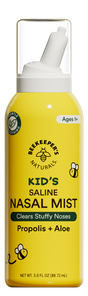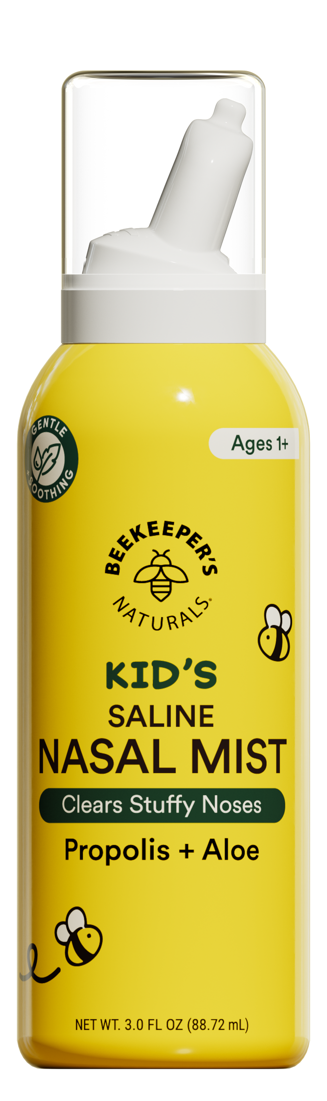 Beekeeper's Naturals best-selling Propolis Nasal Spray, now made just for kids. The Kid’s Saline Nasal Mist delivers the same soothing and clearing power in a gentle, calming formula. Formulated with doctors, Kid's Nasal Mist features propolis and aloe leaf extract to help ease irritation and keep little noses moisturized—so breathing stays easy, season after season.