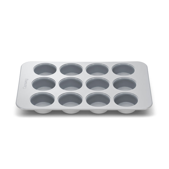 Caraway's 12-cup Muffin Pan enables you to bake goods without any of the bads: use for blueberry muffins, egg-white bites, and more. Featuring a non-toxic, naturally slick ceramic coating, this durable pan makes healthy baking (and clean up) easier than ever.