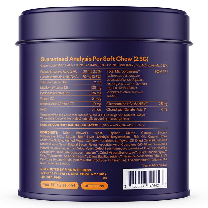 Finn was started by dog lovers who wanted more than just treats — they wanted daily nutrition they could trust for their pets. Working closely with veterinarians, Finn crafts chews using only human-grade, traceable ingredients, always listed clearly on the label. Every batch is made in the USA and third-party tested, so you know exactly what’s supporting your dog’s well-being.
