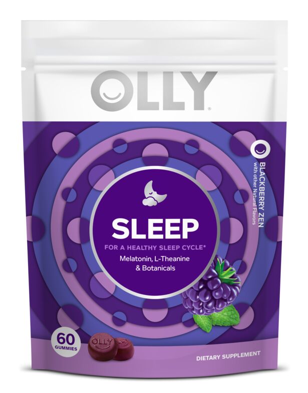 OLLY Sleep gummies for adults deliver a unique blend of active ingredients that work together to calm your mind and promote restful sleep so you wake up feeling refreshed. These Melatonin gummies, with L-Theanine and Botanicals like Chamomile and Lemon Balm, help boost your natural sleep hormone and encourage relaxation so it’s easier to fall asleep. Naturally flavored with Blackberry and a hint of mint, Sleep gummy vitamins help you drift off. They're naturally delicious, scientifically formulated and gluten-free.