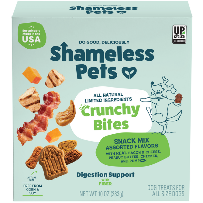 The idea for Shameless Pets was born at a dinner table, when co-founder James wondered if perfectly good produce that never makes it to grocery shelves could nourish pets instead of going to waste. Drawing on his food industry experience and inspired by his rescue pup, Mina, he set out to craft treats from upcycled fruits and vegetables.