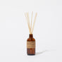 A brown glass P.F. Candle Co. Reed Diffuser labeled No. 32: Sandalwood Rose, features light wooden reeds, enhanced with teakwood hints, and made with fine fragrance oil.