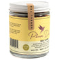 A glass jar of Plum Deluxe Self Care Apricot Elderberry Tea with a yellow label lists ingredients like honeybush blend, elderberry, peaches, apple pieces, and marigold. The jar has a white lid and a beige tag reading Herbal Tea. A glass jar of Plum Deluxe Self Care Apricot Elderberry Tea, a caffeine-free honeybush blend with elderberries, peaches, and apricot, features a tan Herbal Tea tag emphasizing its relaxing qualities. A stack of Plum Deluxe Creme Brulee Earl Grey with Jasmine & Vanilla tea tins sits on a marble surface near a teacup, with a vase of colorful flowers in the background, all bathed in soft, natural light. A white teacup with tea sits beside eight Plum Deluxe Creme Brulee Earl Grey with Jasmine & Vanilla Tea jars with yellow labels, one jar lying down, loose tea leaves, and a wooden scoop on a white surface.