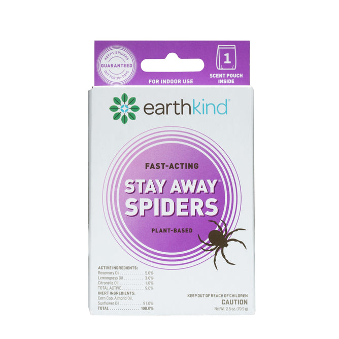 Earthkind’s spider deterrent, Stay Away® Spiders, is made with a mix of plant-based essential oils and other botanical ingredients. Place the pouches throughout the home in areas currently or previously impacted by these pests to deter spiders and keep them from returning.