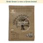 A brown resealable pouch of grab green Stoneworks Laundry Detergent Pods – Oak Tree scent, with 50 pods, stain-fighting and odor-neutralizing power, eco-friendly packaging, and an illustrated tree. A brown resealable pouch of grab green Stoneworks Laundry Detergent Pods - Oak Tree stands upright on a plain white background, featuring a tan label with black instructions, ingredients, and product info. Pods provide powerful odor-neutralizing action.