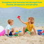 A white bottle of Fresh Monster Swim Shield Chlorine Repair Conditioner with a blue and yellow wave label—formulated for deep hydration and to repair swimmers hair, featuring the Essential Tamer Protect Complex. A white bottle of Fresh Monster Swim Shield Chlorine Repair Conditioner features a blue and yellow label with wave graphics, details, and directions. The women-owned label highlights Deep Hydration and Harsh Chemicals Free benefits in bold text. Three smiling children play in shallow ocean waves. In the foreground, three Fresh Monster Swim Shield Chlorine Repair Conditioner bottles promise nourishment and protection from chlorine, salt, and sun above a pink “Fresh Monster” banner. A yellow speech bubble on blue background highlights Fresh Monster Swim Shield Chlorine Repair Conditioner’s features with icons: no harsh chemicals, no synthetic fragrance, paraben free, phthalate free, hypoallergenic, cruelty free, made in USA. Two young children play with sand toys and a beach ball on the beach. Text above reads, Fresh Monster Swim Shield Chlorine Repair Conditioner deeply hydrates and repairs swimmers hair damaged by chlorine, UV, and salt water.