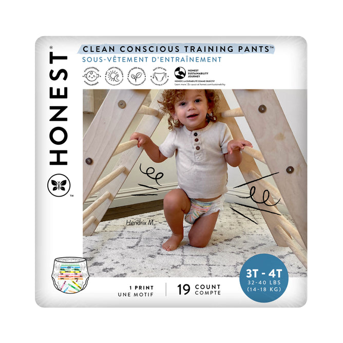 Make the potty-training process a breeze with Honest’s Clean Conscious Training Pants™. Featuring a super absorbent core with responsibly-managed, Elemental Chlorine-Free fluff pulp and designed to be easy for your toddler to pull on and off - these soft and cozy must-haves make the transition to the toilet as smooth as possible for everyone. With day or night protection built in and so many adorable prints and styles to choose from, your lil’ one will feel cute, confident and ready to potty ‘round the clock.