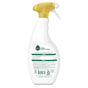 A white Seventh Generation Tub & Tile Cleaner spray bottle with a yellow nozzle and a green label decorated with leaves and lemon slices.