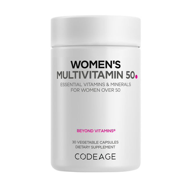 Codeage Women’s Multivitamin 50 is an advanced daily multivitamin designed specifically for women over 50. Featuring essential vitamins like A, C, D3, E, and K, along with methylated B-vitamins such as Folate and B12. It also includes vital minerals like Calcium, Magnesium, and Zinc, as well as antioxidants and herbs like Black Cohosh and Marigold Extract.